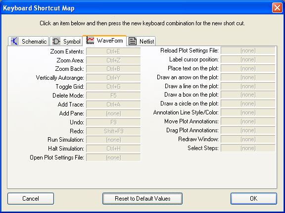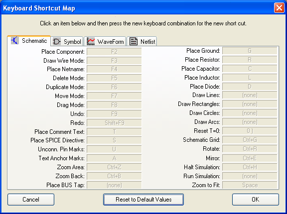 - List of shortcuts in Ltspice Schematic Editor (png, 29k)