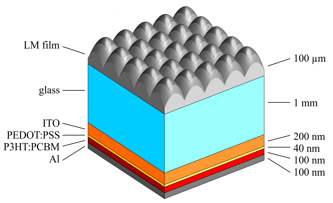 • kombinirani optični model (3D sledenje žarkov + 1D metoda prenosnih matrik) za natančno analizo nekoherentnega in koherentnega širjenja svetlobe