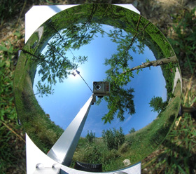 V okviru analize senčenja na sami lokaciji predvidene sončne elektrarne opravimo večtočkovne meritve senčenja s pomočjo 360° digitalnega posnetka okolice. Kot je prikazano na spodnji sliki v posnetek okolice vrišemo tipične trajektorije sonca, s pomočjo katerih natančno ovrednotimo vplivokoliških predmetov na delovanje predvidene sončne elektrarne.